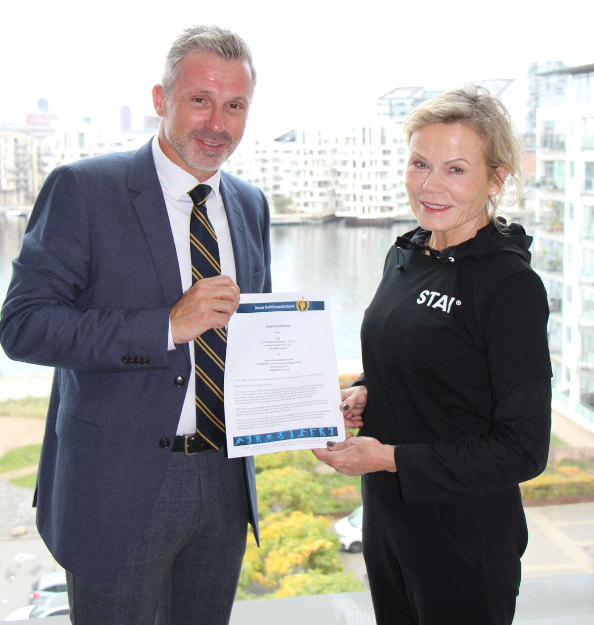 På billedet ses direktør og founder af STAI, Jytte Bille og formand for Dansk Politiidrætsforbund Henrik Sønderby.