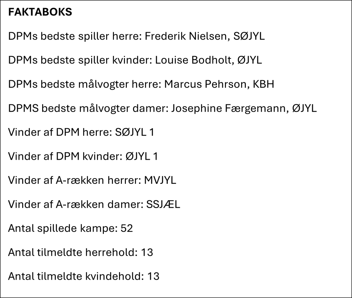 I alt deltog 26 hold – fordelt på 13 herrehold og 13 kvindehold. Hos herrerne var der som sædvanlig en eliterække, hvor fire hold kæmpede om mesterskabstitlen. Hos kvinderne bød mesterskabet på en glædelig nyhed: For første gang nogensinde var der nok hold til at opdele turneringen i både en A-række og en eliterække. Det har længe været et ønske fra både deltagere og håndboldudvalg, og det gav optimale rammer for både bredde og elite.