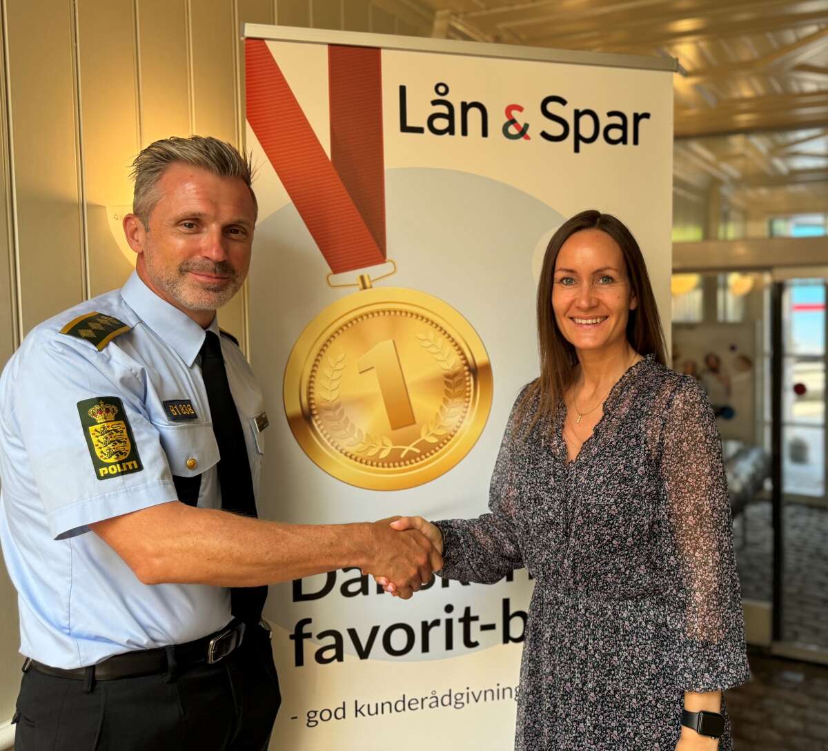 Dansk Politiidrætsforbund og Lån & Spar fortsætter det gode samarbejde. På billedet ses formand for Dansk Politiidrætsforbund Henrik Sønderby og Helle Viuf Sommer, partneransvarlig i Lån & Spar.
