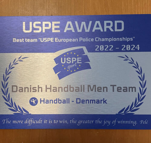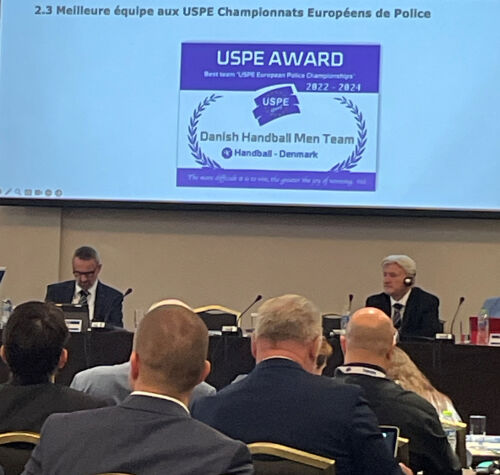 Dansk Politiidrætsforbund havde i forbindelse med USPE-kongressen der blev afholdt i Thessaloniki i Grækenland fra den 1.-3. november 2024 indstillet det danske herrehåndboldlandshold til at modtage USPE´s ”Best Team Award” for deres præstation ved de europæiske politimesterskaber i håndbold i Ungarn i september måned 2023. De danske herrer vandt guld efter en meget spændene finale imod Tyskland.
