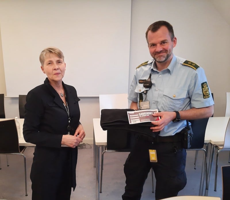 Politidirektør Lene Frank og cpi. Lars Harvest tog den 3. februar til stationen i Nykøbing F, hvor de havde aftalt med lederen af Lokalpolitiet, pk. Kent Edvardsen, at han kaldte sine medarbejdere sammen til kaffe og kage. Og til stor overraskelse for alle, og særligt Morten Adamsen Jensen blev meget overrasket, da hans navn blev nævnt. Han blev meget glad for “prisen” og de tilhørende gaver fra DPIF.