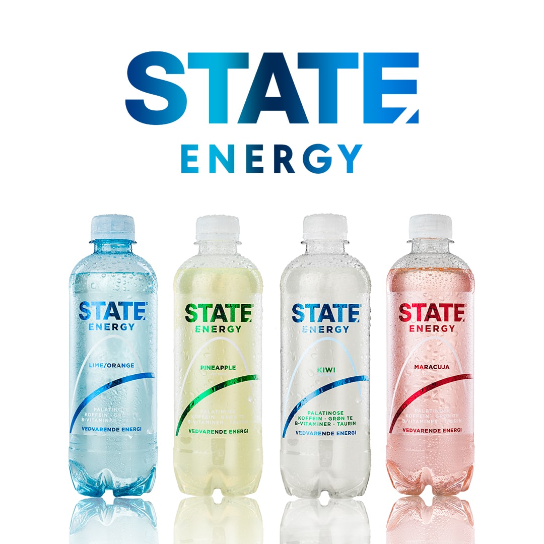 STATE er energidrikken til dig, der vil opnå en unik kombination af et højt og mere vedvarende energiniveau, og produktet indeholder både b-vitaminer, elektrolytter, dansk kildevand, koffein, naturlig grøn te-ekstrakt, taurin og den innovative sukkerart, Palatinose, der sikrer en dokumenteret langsommere blodsukkerstigning end alt almindeligt sukker som du kender det og det sikrer derved en længerevarende energi og en mere stabil frigivelse/optagelse i blodbanen over tid.