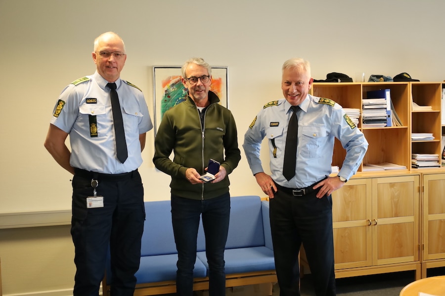 Hans fik derfor overrakt sin hæder af politidirektør, Jørgen Abrahamsen, og næstformand i DPIF, Jens Claumarch, mandag d. 12. december, hvor Hans var kaldt “på tæppet” – uden at vide hvorfor!